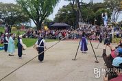 브릿지저널 김경미 기자 | 진주시는 진주남강유등축제와 연계하여 진주성 중영에서 진행 중인 전통연희 공연 '진주성 연희광대'가 시민과 관광객들의 큰 호응 속에 진행됐다고 밝혔다. 이번 공연은 10월 4일부터 9일까지 1일 1회(추석당일 제외), 총 5회 일정으로 많은 시민과 관광객이 참여해 낮 시간대에 펼쳐지는 공연임에도 관람석이 가득 찰 만큼 뜨거운 열기를 보였다. '진주성 연희광대'는 진주성의 역사와 민속 전통을 바탕으로, 이야기꾼의 재치 있는 해설과 입담 속에 죽방울놀이·버나놀이·모듬북 공연·줄타기 등이 어우러진 흥겨운 전통연희 공연이다. 공연이 펼쳐지는 진주성 중영과 인접한 촉석루 일원은 임진왜란 진주대첩의 역사와 유서 깊은 정취가 깃든 공간으로, 관람객들은 유서 깊은 성곽과 누각을 배경으로 전통연희의 흥과 감동을 함께 느낄 수 있다. 특히 진주남강유등축제와 연계해 운영되며, 낮에는 진주성에서 전통 공연을 감상하고, 밤에는 남강의 유등을 즐길 수 있는 진주의 대표 가을 축제로 자리매김했다. 진주시 관계자는 “이야기꾼의 생동감 넘치는 해설과 전통연희가 어우러진 이번 공연은 진주의 역