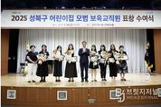 브릿지저널 김경미 기자 | 서울 성북구가 지난 26일 관내 어린이집에서 장기간 근무하며 보육서비스 향상과 우수 보육프로그램 개발, 보육환경 개선에 기여한 모범 보육교직원에게 표창을 수여했다. 올해 수상자는 원장, 보육교사, 조리사 등 총 77명으로, 각자의 자리에서 아이들의 안전과 건강, 교육의 질 향상에 힘써온 공로를 인정받았다. 이번 표창은 성북구가 지역 내 보육의 질을 높이고 아이들이 안정적이고 즐거운 환경에서 성장할 수 있도록 기여한 교직원을 격려하기 위해 마련됐다. 수상자들은 오랜 경력 동안 어린이집 운영과 교육, 급식 관리 등 다양한 분야에서 모범적인 활동을 이어온 점이 높게 평가됐다. 이승로 성북구청장은 인사말에서 저출생으로 인해 어려움이 가중된 보육 현장에서 묵묵히 일하는 교직원들의 노고에 존경과 깊은 감사를 표했다. 또한 앞으로도 아이들이 건강하게 성장하고 꿈을 키워 나갈 수 있도록 지속적으로 보육의 질을 높이는 데 힘써 줄 것을 당부했다. 이와 함께 구 차원에서도 교직원의 처우 개선과 보육환경 개선을 위해 다양한 지원 방안을 모색하고 추진하겠다고 밝혔다. 이번 표창 수여식은 교직원들의 사기 진