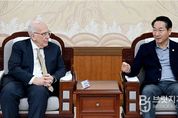 브릿지저널 김경미 기자 | 유정복 인천시장은 12월 3일 오후 인천시청 접견실에서 세계 최고 수준의 의과·바이오 연구 중심 대학인 존스홉킨스대의 조나단 슈넥(Jonathan schneck) 의과대학 교수(왼쪽) 일행을 접견했다. 이번 접견은 12월 4일 인천에서 ‘존스홉킨스대 글로벌 바이오 혁신 서밋’을 개최하게 됨에 따라, 이번 서밋을 주관한 존스홉킨스대학의 교수진과 다양한 협력 방안을 논의하기 위해 마련됐다. 유정복 인천광역시장(가운데), 조나단 슈넥 교수(왼쪽에서 세 번째), 김덕호 존스홉킨스 글로벌 생명공학 혁신 센터장(왼쪽에서 두 번째)는 ▲향후 인천을 거점으로 한 한-미 공동연구 및 바이오 혁신기술 산업화 방안 ▲존스홉킨스대 연구센터(R·D센터) 유치 등에 대한 논의를 이어갈 방침이다. 조나단 슈넥 존스홉킨스대 교수는 “송도를 중심으로 한·미 바이오 협력이 새로운 글로벌 혁신 모델로 정착하길 기대한다”라고 말했다. 유정복 인천시장은 “인천시는 세계적 연구기관과 글로벌 기업, 산업 협회와의 협력을 통해 연구개발부터 산업화, 글로벌 진출까지 연결되는 바이오 산업 생태계 조성을 적극 지원하겠다