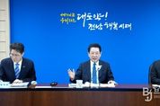 브릿지저널 김경미 기자 | 김영록 전라남도지사는 3일 “행정통합 제1의 중요한 문제는 산업 유치다. 전남·광주가 모두 잘 살도록 어느 지역이나 계층도 소외됨이 없고, 한분 한분이 손해보는 일이 없도록 구체적 로드맵을 준비하자”고 강조했다. 김영록 지사는 이날 오전 도청 서재필실에서 실국 정책회의를 열어 “지난해 말 행정통합 의지를 밝히면서 ‘잘 될 수 있을까’ 걱정했는데, 광주시장이 즉시 화답하고, 대통령의 청와대 오찬과 정부의 20조 재정 인센티브 발표에 더해 민주당 양 시도당위원장이 시·도 균형을 맞추면서 선도적 역할을 해줘 특별법이 제정됐다”며 이같이 밝혔다. 이어 “대한민국 제1호 광역통합으로서 전남광주통합특별시 출범은 온 시도민과 함께 일군 역사적인 쾌거”라며 “앞으로는 보다 구체적인 통합추진 로드맵을 만드는 등 7월 출범 이후 혼선이 없도록 준비하자”고 당부였다. 최우선 과제로 산업 육성을 제시했다. 이는 대통령의 강조 사항이기도 하고, 행정통합 관련 시도민 여론조사에서도 나타났다. 김영록 지사는 “젊은 청년에게 일자리를 만들어줄 Y4-노믹스 비전을 발표했는데, ‘Y’는 젊은세대(Youn