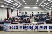 브릿지저널 윤나영 기자 | 강릉시 주문진읍은 24일 주문진 문화교육센터에서 한 해 동안 지역 행정의 최일선에서 헌신해 온 이‧반장들의 노고를 격려하고, 2025년 한 해를 마무리하기 위한 주문진읍 이‧반장대회를 개최했다. 행사에는 권혁열 강원특별자치도의회 의원, 조대영 강릉시의회 부의장, 허병관 시의원, 김문섭 시의원이 참석해 지역 발전을 위해 애써 온 이‧반장들의 노고에 감사의 뜻을 전하며 자리를 함께했다. 이날 행사는 올 한 해 주문진읍 주요 추진 사업과 행정 성과를 공유하는 읍정 보고를 중심으로 진행됐으며, 지역 현안을 함께 되돌아보고 향후 읍정 운영 방향에 대해 소통하는 뜻깊은 자리로 마련됐다. 조태란 읍장은 “올 한 해 지역 곳곳에서 주민과 행정을 잇는 가교 역할을 성실히 수행해 주신 이‧반장 여러분께 깊이 감사드린다.”며, “이번 이‧반장대회를 통해 한 해를 잘 마무리하고, 앞으로도 주문진읍 발전을 위해 함께 힘을 모아 나가겠다.”고 말했다.
