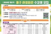 브릿지저널 김경미 기자 | 인천 동구는 오는 3월 9일~4월 3일까지‘2026년 제2기 동구 여성회관’ 수강생을 모집한다고 밝혔다. 오는 4월 1일부터 3개월 과정으로 진행되는 제2기 정규강좌 프로그램은 ▲실내인테리어(도배 및 필름) ▲등라탄공예 ▲요리·공예 프로그램 등 총 26개 과정으로 운영되며, 직장인을 위한 바리스타 2급 야간반 및 퇴근 후 ‘뚝딱 반찬’ 등 야간 강좌도 운영될 예정이다. 또한 브런치 만들기 강좌를 1개월 단기 특강으로 운영해 주민들이 부담 없이 참여할 수 있도록 구성했으며, 일일 무료 특강으로는 ▲핸드드립&퓨전떡 만들기 ▲딸기도지마롤케이크 만들기 ▲패션도식화(옷그리기) 특강이 준비된다. 수강 신청은 인천시 거주자를 대상(동구 주민 우선)으로 여성회관 홈페이지를 통해 선착순 접수하며 온라인 접수에 어려움을 겪는 자, 동구사랑상품권, 평생교육 바우처 사용자는 여성회관으로 방문하여 신청할 수 있다. 김찬진 동구청장은“여성회관 교육 프로그램이 주민들의 자기계발과 역량강화에 실질적인 도움이 되기를 희망한다”며 “여성뿐 아니라 남성 수강생도 많은 문의와 참여를 바란다”고 말했다.