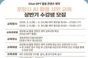 브릿지저널 정보영 기자 | 포항시는 지난해 시민들로부터 큰 호응을 얻었던 ‘생성형 AI 활용 콘텐츠 제작 특강’을 올해도 정규 편성하고, 오는 23일부터 2026년도 상반기(1·2기) 수강생을 모집한다. 이번 특강은 ChatGPT를 활용한 생성형 AI를 실생활과 업무에 즉각적으로 활용할 수 있는 실질적인 학습 기회를 제공하기 위해 마련됐다. 지난해 실시된 특강이 시민들로부터 높은 관심과 만족도를 기록함에 따라, 시는 총 6기에 걸쳐 확대 운영할 계획이다. 이번 모집은 그중 상반기에 시작되는 1기와 2기를 대상으로 진행된다. 교육은 기수별로 4주 동안 주 1회(회당 2시간)씩 진행된다. 야간반인 1기는 3월 3일부터 24일까지 매주 화요일 오후 7시에 운영되며, 2기는 3월 9일부터 30일까지 매주 월요일 오전 10시에 시작된다. 교육 장소는 경북콘텐츠기업지원센터 5층이다. 포항시민이라면 누구나 신청 가능하며, 모집 인원은 기수별 20명씩 총 40명이다. 단, 더 많은 시민에게 교육 기회를 제공하기 위해 중복 접수는 불가능하다. 접수 기간은 오는