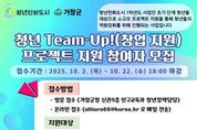 브릿지저널 김경미 기자 | 거창군은 지역 청년들의 창의적 도전과 자립적 성장을 지원하기 위해 오는 10월 22일까지 청년 Team-up(창업지원) 프로젝트 참여자를 모집한다. 이번 사업은 청년친화도시 1차년도 주요 사업으로, 창의적 아이디어는 풍부하지만 기존 창업·공동체 지원사업에 참여하기 어려운 초기 단계 청년들을 대상으로 하여 청년들이 직접 기획하고 실행하는 소규모 프로젝트를 지원해 실패 부담을 줄이고, 자유로운 실험과 성장을 장려하는 것이 목적이다. 모집 대상은 공고일 기준 거창군에 주소를 둔 청년(1979년생 ~ 2006년생) 개인 또는 소규모 단체 누구나 지원할 수 있으며, 시제품 개발, 컨설팅 비용, 마케팅 행사, 팝업 운영 등 창업 관련 실험적 과정이나 청년 문제 해소를 위한 아이디어 사업을 지원한다. 사업비는 팀당 최대 500만원, 총 10팀에게 지원되며, 시설비·수선비·장비 구입비 등 단순 자본적 경비는 제외된다. 신청은 인구교육과 청년정책담당 방문 또는 이메일 접수할 수 있고 자세한 사항은 거창군청 또는 거창청년사이 홈페이지에서 확인가능하며 기타사항은 인구교육과 청년정책담당으로 문의하면 된다.
