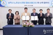 브릿지저널 윤나영 기자 | 삼척시는 노후 상수관망 정비사업의 효율적인 추진을 위해 12월 22일 오전 11시, 삼척시청 소회의실에서 한국수자원공사(K-water) 한강유역본부(본부장 이선익)와 위수탁 협약을 체결했다. 양 기관은 이번 협약을 통해 노후 상수관로를 단계적으로 교체하고, 체계적인 유량 감시 시스템을 구축할 계획이다. 이를 통해 유수율을 향상시키고 수돗물 생산 비용을 절감하는 한편, 녹물 발생과 누수 문제를 근본적으로 개선해 보다 안정적인 수돗물 공급 체계를 마련할 것으로 기대된다. 박상수 삼척시장은 “물관리 전문기관과의 협력을 통해 사업의 완성도를 높이는 중요한 계기가 될 것”이라며, “총사업비 303억 원이 투입되는 대규모 사업인 만큼 철저한 현장 관리와 체계적인 정비를 통해 시민들이 안심하고 마실 수 있는 건강한 물 환경 조성에 최선을 다하겠다”고 전했다.