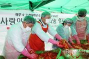 브릿지저널 정보영 기자 | 김완근 제주시장은 11월 28일 남현김치에서 열린 제주4·3희생자유족회 제주시지부 부녀회(회장 김효자) 주관 김장김치 나눔 행사에 참석해 제주4·3유족들과 함께 김장을 담그는 뜻깊은 시간을 가졌다. 이번 행사는 제주4·3유족과 지역의 어려운 이웃들에게 김장김치를 전달해 겨울을 조금이나마 따뜻하게 보낼 수 있도록 돕기 위해 마련됐다. 행사장에서 김 시장은 절임배추에 양념을 정성껏 버무리며 부녀회 회원들과 함께 나눔의 의미를 되새겼다. 이날 담근 김장김치는 제주4·3유족을 비롯해 독거노인, 저소득 가구 등 어려운 이웃들에게 전달되어 따뜻한 겨울나기에 힘을 보탤 예정이다. 김효자 부녀회장은 “작은 정성이지만 누군가에게는 큰 힘이 되길 바라는 마음으로 김장을 준비했다”며, “앞으로도 지역사회에 온기를 전하는 활동을 꾸준히 이어가겠다”고 말했다. 김완근 제주시장은 “김장에는 단순한 음식 이상의 마음이 담겨 있다. 함께 버무린 이 한 포기의 김치가 누군가의 겨울을 덜 춥게 해주길 바라는 마음으로 참여했다”며, “특히 4·3 유족회 부녀회 여러분과 함께한 이 시간이 더 깊