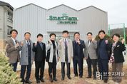 브릿지저널 김경미 기자 | 윤건영 충청북도교육감과 정영철 영동군수는 27일 오전 10시 30분 영동산업과학고와 이수초등학교를 차례로 방문해 영동교육발전특구 핵심 사업 추진 현황을 점검했다. 두 기관장은 먼저 영동산업과학고 스마트팜 조성 현장을 찾았다. 특구 사업의 일환으로 조성 중인 스마트팜(가로 15m‧세로 20m‧높이 6m)은 현재 기본 골조 공사가 완료된 상태다. 스마트팜에서는 학생들이 센서를 활용해 작물 생육 상태를 확인하고, 스마트폰이나 컴퓨터로 물을 주며, 관찰 데이터를 분석해 식물이 가장 잘 자라는 환경을 찾아내는 미래형 농업 실습을 진행할 예정이다. 이 시설은 고등학생 실습에 그치지 않고 유‧초‧중학생 대상 스마트팜 진로체험 프로그램부터 고교 심화 실습, RISE 사업*과 연계한 전문교육까지 연계되는 '정주형 인재순환 체계'의 핵심 인프라로 활용된다. 영동산업과학고는 도내에서 유일하게 융합기계과를 운영하는 농업계 특성화고로, 2025년 9월 전국기능경기대회에서 CNC/밀링 직종에서 금메달(이동규/2026년 1월 삼성전자 취업) 수상자를 배출하는 등 실무 중심 교육 성과를 거두고 있다.