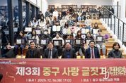브릿지저널 김경미 기자 | 인천시 중구는 지난 16일 중구 평생학습관 3층 책뜰에서 ‘제3회 중구 사랑 글짓기 대회 시상식’을 개최했다. 올해로 3회를 맞는 ‘중구 사랑 글짓기 대회’는 학생들 스스로 발로 걸으며, 눈으로 본 중구의 역사, 문화, 자연을 아름다운 글로 표현함으로써, 애향심을 고취하고 인문학적 소양을 키울 수 있도록 돕는 데 목적을 둔 사업이다. 특히 인천시 교육청의 ‘읽·걷·쓰 캠페인’과 연계한 중구 교육혁신지구 특화 사업인 ‘중구마을 구석구석 탐방 사업’의 결실이기도 하다. 올해 대회에는 학생들의 맑은 시선으로 바라본 중구의 거리, 유구한 역사가 깃든 건축물, 바다 내음 가득한 풍경들을 다양한 형식의 글로 표현한 300여 점의 작품이 접수됐다. 치열한 심사 끝에 대상 4명, 최우수 8명, 우수 8명 등 총 20명(초등 부문 10명, 중등 부문 10명)의 입상자가 선정됐다. 시상식 말미에는 초등 부문 대상 입상자인 정은우 학생이 본인의 글짓기 작품인 ‘나의 중구 사랑 이야기’를 직접 낭독함으로써, 진정성 있는 울림을 통해 현장에 있던 관계자와 학부모들의 감탄을 자아냈다.