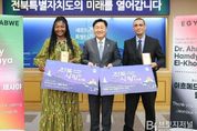 브릿지저널 윤나영 기자 | 전북특별자치도가 아프리카 스포츠 부처 고위 관료들에게 도민증을 수여하며, 국제 스포츠 도시로서의 위상 강화에 나섰다. 김관영 도지사는 4일 도청 회의실에서 아프리카 짐바브웨 에밀리 제사야 국회의원 겸 스포츠․문화부 차관과 이집트 아흐메드 아즈미 사이드 청소년․스포츠부 차관에게 전북사랑 도민증을 수여했다. 이번 수여는 재외동포를 제외한 순수 외국인 대상으로는 첫 사례다. 두 차관은 앞으로 아프리카를 포함한 전 세계에 전북을 홍보하고 국제 스포츠 개최 최적지임을 알리는 글로벌 외교 동반자 역할을 수행하게 된다. 도는 지난 9월 국제외교 협력 강화를 위해 아프리카 나미비아와 짐바브웨를 방문했다. 당시 주짐바브웨대한민국대사관과 공동 개최한 '공공외교 한마당 K-페스티벌'에서 짐바브웨의 촉망받는 여성 지도자인 에밀리 제사야 차관을 만나 이달 4일부터 9일까지 원광대학교에서 열리는 '2025 익산 빅터 코리아마스터즈 배드민턴 선수권대회' 방한을 제안했다. 북아프리카에 위치한 이집트는 FIFA 산하 아프리카 축구연맹 본부가 소재하는 등 아프리카 스포츠 행정의 중추적 역할을 담당하고 있