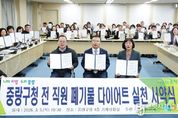 브릿지저널 김경미 기자 | 중랑구가 생활폐기물 감량과 올바른 분리배출 문화 확산을 위해 ‘폐기물 다이어트’ 실천에 나섰다. 구는 지난 5일 직원들과 함께 ‘폐기물 다이어트 실천 서약식’을 개최했다. 이번 서약식은 올해 1월 1일부터 시행된 수도권 생활폐기물 직매립 금지 정책에 대응하고 주민 참여 기반의 자원순환 문화를 확산하기 위해 마련됐다. 이날 서약식에는 구청장을 비롯한 부서장 등 조직 책임자들이 참여해 폐기물 감량과 올바른 분리배출 실천을 다짐했다. 서약 항목은 ▲음식물 쓰레기 분리배출 ▲비닐·플라스틱 분리배출 ▲종이 분리배출 ▲다회용기 사용 ▲외출 시 장바구니·텀블러 사용 등 일상에서 실천할 수 있는 다섯 가지 행동이다. 중랑구는 이번 서약식을 계기로 주민 참여형 자원순환 정책도 확대한다. 폐기물 감량 TF를 구성하고 분리배출 취약지역에 재활용품 분리수거함을 설치해 환경을 개선할 예정이다. 또한 분리배출 안내 리플릿과 카드뉴스 제작, 학교·어린이집 대상 찾아가는 교육, 투명페트병을 가져오면 종량제봉투로 교환해주는 ‘재활용 정거장’ 운영 등 주민 참여 프로그램을 추진한다. 아울러 중랑구는 서울