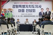 브릿지저널 윤나영 기자 | 김진태 강원특별자치도지사는 '강원특별법' 군사특례를 활용한 첫 권한 행사로 지난 3월 군사규제 개선 성과를 거둔 철원군을 11월 14일 방문해 도지사 ‘마을진담회’(진솔한 +간담회)의 네 번째 자리를 마련했다. 이번 진담회는 주민과의 소통을 강화하고, 현장의 의견을 보다 폭넓게 듣기 위해 철원군을 김화·갈말권역과 철원·동송권역의 두 개 권역으로 나누어 진행했다. 이날 행사에는 김진태 지사를 비롯해, 한기호 국회의원(춘천, 철원, 화천, 양구을), 이현종 철원군수, 김정수·엄기호 도의원, 이장, 주민자치위원, 노인회 등 각계각층의 주민 300여 명이 참석해 뜨거운 관심 속에 진담회가 시작됐다. 이현종 철원군수는 “이번 방문은 지사님께서 철원을 아끼고 주민의 애로사항을 듣고 신속히 반영하고자 하는 마음의 표현”이라고 말했다. 이어 “철원군은 군사규제 100만평 완화, 농업진흥지역 3만 4천 평 해제 등 규제 개선의 가시적 성과를 이뤄냈다”고 설명했다. 또한, “수돗물 하수처리시설 개선을 위해 도비 약 60~70억 원을 지원받아 추진 중이며, 신철원과 와수 지역은 그동안 여건
