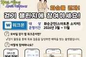 브릿지저널 김경미 기자 | 화순군은 27일 군민의 일상 속 걷기 실천을 유도하고 걷기 문화 확산을 위해 오는 3월부터 11월까지 모바일 걷기 앱 ‘워크온’을 활용한 군민 걷기 챌린지를 운영한다고 밝혔다. 이번 챌린지는 화순군민이면 누구나 참여할 수 있으며, 참여는 ▲워크온 앱 설치 ▲화순군 공식 커뮤니티 가입 ▲챌린지 화면에서 ‘참여하기’를 선택한 후 스마트폰을 소지하고 걸으면 된다. 다만, 참여 지역이 화순군으로 제한되어 있어 휴대폰 위치 설정을 반드시 활성화한 후 진행해야 한다. 화순군은 9개월간 걷기 챌린지를 운영할 계획이며, 1차 챌린지는 3월 6일부터 25일까지 20일간 진행된다. 목표는 15만 보 달성으로, 목표를 달성한 군민 90명에게는 추첨을 통해 모바일 상품권(5천 원권)을 지급할 예정이다. 박미라 보건소장은 “다양한 걷기 챌린지를 통해 군민들이 일상에서 자연스럽게 걷기 습관을 기를 수 있도록 돕겠다”라며, “걷기 실천을 통해 걷기 좋은 동네, 건강한 화순을 만드는 데 군민 여러분의 많은 참여들 부탁드린다”라고 말했다.