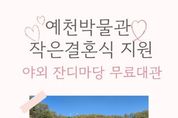 브릿지저널 정보영 기자 | 예천박물관은 오는 3월부터 야외 잔디마당을 ‘작은결혼식’ 장소로 무료 대관한다고 밝혔다. 이번 사업은 과도한 결혼 비용과 형식 중심의 예식 문화에서 벗어나, 실속 있고 가치 중심의 결혼식을 장려하기 위해 마련됐다. 특히 자연 친화적이고 개방감 있는 예천박물관 야외 잔디마당의 공간적 특성을 살려 가족·친지 중심의 따뜻한 예식을 지원할 계획이다. 대관 대상은 신청일 현재 부부 중 1인 이상이 예천군에 주소를 두고 있는 예비 부부로, 신청을 희망하는 경우 예천박물관 홈페이지에서 신청서를 내려받아 작성 후 제출하면 된다. 예식은 양가 하객 100명 이하의 소규모로만 가능하며, 음식 제공은 음료에 한해 허용되고 피로연은 금지된다. 김상식 문화관광과장은 “박물관의 아름다운 잔디마당이 예비부부들에게는 실속 있고 특별한 추억의 장소가 되길 기대한다”며 “이용객들이 불편함 없이 생애 가장 빛나는 순간을 맞이할 수 있도록 운영과 지원에 최선을 다하겠다”고 말했다.