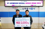 브릿지저널 김경미 기자 | 인천시 남동구는 최근 KT 서부법인본부 인천지사로부터 취약계층을 위한 백미 10kg 200포를 기탁받았다고 17일 밝혔다. 이번 쌀 나눔에서는 임직원 240명이 참여한 ‘완밥식당’프로그램을 통해 적극적으로 이뤄졌으며, 지역 사회와 상생하는 ESG 경영을 일환으로 추진됐다. 기탁된 백미는 경제적 어려움을 겪고 있는 사회복지시설 및 동 행정복지센터로 전달됐다. 김상철 지사장은 “지역 사회와 함께 성장하는 기업으로서 작은 정성으로 이웃들에게 도움이 되기를 바라며 KT 임직원들과 함께 마음을 모았다”라며 “이번 나눔이 더 많은 이웃에게 용기와 위로가 전해지길 희망한다”라고 밝혔다. 박종효 남동구청장은 “지역의 어려운 이웃을 위해 쌀 나눔 행사를 해주신 KT 임원분들께 깊이 감사드린다”라며 “후원품은 도움이 필요한 분들께 정성껏 전달해 모두가 함께하는 따뜻한 남동구를 만드는 데 소중히 사용하겠다”라고 말했다.