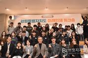 브릿지저널 윤나영 기자 | 강원인재원은 12월 20일 춘천 신디자인랩 오디토리움에서 강원 미래인재 장학생 등 70명이 참석한 가운데‘미래인재 워크숍'을 개최했다고 밝혔다. 이 날 행사에서는 한 해 동안 우수한 성과를 거둔 학생들을 격려하는 '올해를 빛낸 미래인재' 수여식이 진행됐다. 성취 부문은 안정빈(2024년 선발, 서울예고 3년) 군이, 나눔 부문은 양태환(2019년 선발, 홍익대 실용음악 2년) 군이 선정됐으며 해당 학생들에게는 각 300만 원의 특별 장학금이 지급될 예정이다. 또한 그동안 비정기적으로 운영되던 모임을 전체 미래인재 간 네트워크 강화를 위해 올해 처음으로 워크숍을 개최했다. 미래인재 출신 신정엽 대표(신디자인랩 건축사무소)의 격려와 함께 내년도 미래인재 프로그램과 관련 의견 수렴 시간을 가졌다. 한편 신 대표가 주관하는 지식문화기부 플랫폼 강연(그랜드렉처)에서는 강원인재원 여행장학금 장학생의 성과공유회, 장학생과 미래인재 간 교류의 장으로 마련하여 워크숍을 더욱 풍성하게 했다. 김학철 원장은 "강원 인재가 함께 성장하기 위해서는 서로 간의 응원과 격려