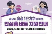 브릿지저널 김경미 기자 | 성남시는 여성 1인 가구의 범죄예방과 안전한 주거생활을 위해 ‘안심 홈세트 3종’을 지원한다고 16일 밝혔다. 지원 품목은 스마트 도어벨, 홈캠, 문열림 센서다. 대상은 성남시에 사는 여성 1인 가구 또는 한부모(모자, 부녀)가족이면서 전월세 보증금 3억원 이하의 다가구·다세대 주택 거주자다. 지원 물량은 44가구다. 시는 신청자의 자격요건 확인 뒤 대상 가구에 안심 홈세트를 선착순으로 지원한다. 희망자는 오는 4월 20일부터 성남시 홈페이지(시정소식→새소식) 또는 경기민원24 홈페이지(여성 1인가구 안심패키지 지원사업)를 통해 신청서와 임대차계약서 사본을 첨부해 보내면 된다. 시청 6층 여성가족과를 방문 접수하거나 담당자 이메일로 해당 서류를 보내도 된다. 성남지역 1인 가구 수는 3월 말 기준 전체 41만325가구의 39%인 16만661가구다. 이 중 여성 1인 가구는 48%인 7만7845가구다. 성남시는 2021년도부터 이 사업을 펴 지난해까지 5년간 576가구에 안심 홈세트를 지원했다.