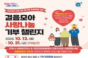 브릿지저널 김경미 기자 | 군포시 산본보건지소는 오는 10월 13일부터 31일까지(19일간) 국민건강보험공단 군포지사와 함께하는 '걸음모아 사랑나눔' 기부챌린지를 운영한다. ‘걸음모아 사랑나눔’ 기부챌린지는 2023년부터 군포시와 국민건강보험공단 군포지사가 협력해 추진해 온 사회공헌형 걷기 사업이다. 시민들이 일상 속에서 걸음을 모아 목표를 달성하면 이를 기부로 연계해 취약계층에 전달하는 방식으로 진행되며 시민과 지역 내 기업·단체가 함께 참여해 건강한 나눔 문화를 지역사회에 확산시키고 있다. 기부챌린지는 군포시민 누구나 참여할 수 있으며 참여 기간은 10월 13일부터 31일까지이다. 참여방법은 워크온 앱을 설치한 뒤 ‘군포시 공식 커뮤니티’에 가입해 챌린지에 참여하면 된다. 챌린지 기간 동안 누적 목표 걸음 수 1억 5천만보를 달성하면 국민건강보험공단 군포지사에서 기부하는 총 100만 원의 기부금이 관내 아동복지시설과 지역아동센터 2곳에 전달될 예정이다. 김미경 군포시 보건소장은 “이번 챌린지는 단순히 건강을 위한 걷기를 넘어 시민 한 분 한 분의 발걸음이 모여 취약계층을 돕는 소중한 나눔으로 이어진다는 데