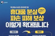 브릿지저널 김경미 기자 | 학교에서 보관·관리하던 중 휴대품 분실·파손 피해 보상 이렇게 확대됩니다. (시행일자 2026.4.1.) ■ 개정 전 보상대상 휴대품: 3종 - 휴대폰, 태블릿PC, 노트북 - 보상한도 100만 원 ■ 개정 후 보상대상 휴대품 확대: 3종 → 5종 - 휴대폰, 태블릿PC, 노트북 (신규) 무선이어폰, 스마트워치 - 보상한도 확대 100만 원 → 200만 원