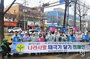 브릿지저널 김진석 기자 | 대구 달성군 화원읍 새마을회(협의회장 임이현, 부녀회장 서태선)가 3·1절을 앞두고 나라사랑 정신을 되새기고 태극기의 의미를 알리기 위한 캠페인을 펼쳤다. 화원읍 새마을협의회와 부녀회 회원 30여 명은 지난 27일 화원삼거리를 중심으로 주요 도로변과 상가 밀집 지역에서 ‘나라사랑 태극기 달기 캠페인’을 진행했다. 이날 새마을회원들은 주민들에게 태극기의 올바른 게양 시간과 위치, 관리 방법 등을 안내하며 자발적인 참여를 독려했다. 특히 어린이와 젊은 세대 대상 홍보 활동에 집중해 미래 세대의 나라사랑 정신 계승에 힘썼다. 임이현, 서태선 새회장은 “태극기 달기 캠페인은 단순한 국기 게양을 넘어 우리 공동체의 자긍심과 애국심을 되새기는 의미 있는 활동”이라며 “많은 주민들이 가정과 직장에서 태극기를 게양해 나라 사랑의 마음을 함께 나누길 바란다”고 말했다. 최수정 화원읍장은 “매년 화원읍 주민들에게 관심을 갖고 따뜻한 사랑을 실천해 주시는 새마을회의 깊은 뜻에 감사드린다”고 전했다.