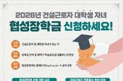 브릿지저널 정보영 기자 | 건설근로자공제회(이사장 직무대행 권혁태)와 협성문화재단(이사장 박석귀)은 건설근로자의 대학생 자녀 학업 지원을 위해 ‘2026년 신규 협성장학생’을 선발한다. 지원대상은 건설근로자공제회에 등록된 건설근로자로 총 적립일수가 600일 이상이고, 2025년도 근로내역은 최소 100일이다. 건설근로자의 자녀 가운데 국내 4년제 대학 신입생과 2026년 기준 2~3학년 재학생을 대상으로 장학생을 모집한다. 선발 인원은 20명 내외다. 제출서류, 심사기준은 협성문화재단 홈페이지 내 공지사항을 통해 확인할 수 있다. 접수기간은 오는 12월 15일부터 내년 1월 5일까지이며, 협성문화재단에 제출서류를 등기우편으로 제출해야 한다. 서류합격자는 2026년 1월 26일 발표되며, 면접은 2월 2일부터 6일까지 진행된다. 최종 합격자는 2월 9일 재단 홈페이지에 게시되고, 2월 12일 장학증서 수여식이 열릴 예정이다. 장학생에게는 등록금 전액과 함께 매 학기 50만원의 학습보조금이 지원된다. 또한 인문학 강의, 독서 프로그램, 해외 탐방 및 봉사 활동 등 다양한 장학 프로그램 참여 기회도 제공된다. 장학생